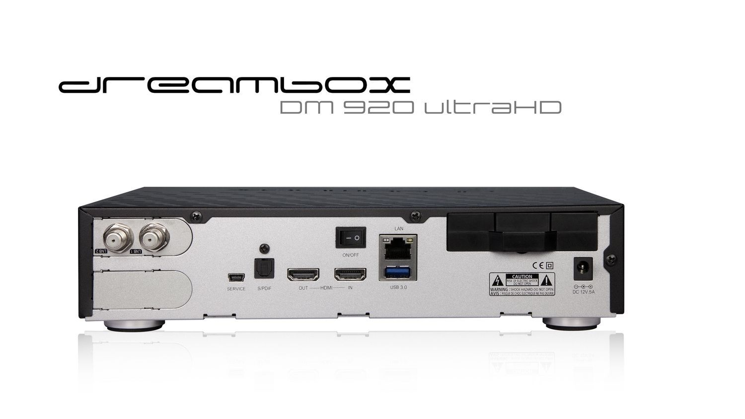 Die neue Dreambox DM920 UHD 4K ist der nächste Ultra HD Receiver von Dream. Die DM920 UHD zeichnet sich insbesondere durch sein Ultraschnellen Prozessor mit 12000 DMips, 8GB Flash und 2GB RAM (Arbeitsspeicher) aus. Sie besitzt zwei Steckplätze für Plug&Play-Tuner, so dass der Kunde die Dreambox für digitalen SAT-, Kabel- oder Antennenempfang (DVB-T/T2) nutzen kann.