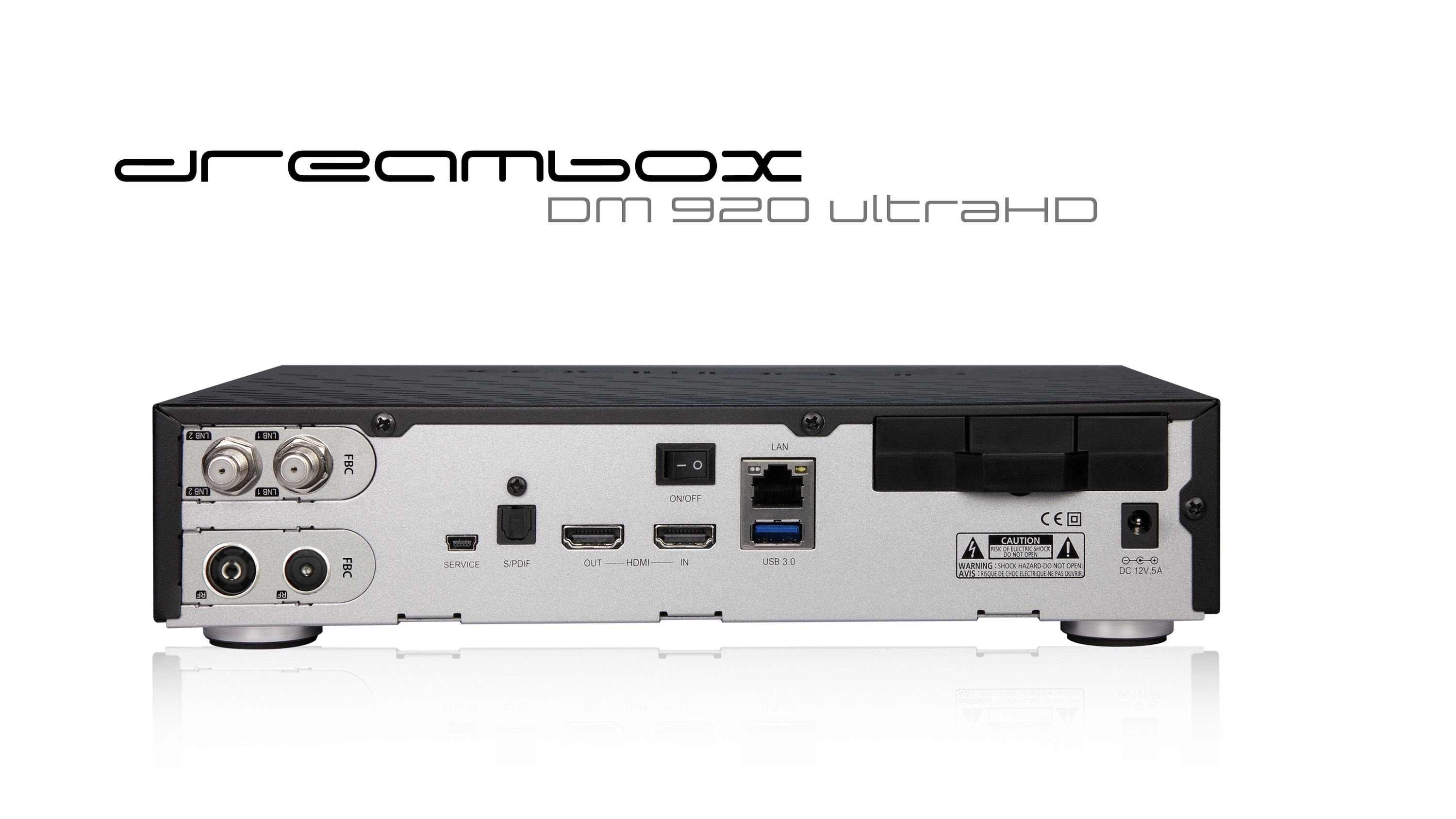 Die neue Dreambox DM920 UHD 4K ist der nächste Ultra HD Receiver von Dream. Die DM920 UHD zeichnet sich insbesondere durch sein Ultraschnellen Prozessor mit 12000 DMips, 8GB Flash und 2GB RAM (Arbeitsspeicher) aus. Sie besitzt zwei Steckplätze für Plug&Play-Tuner, so dass der Kunde die Dreambox für digitalen SAT-, Kabel- oder Antennenempfang (DVB-T/T2) nutzen kann.