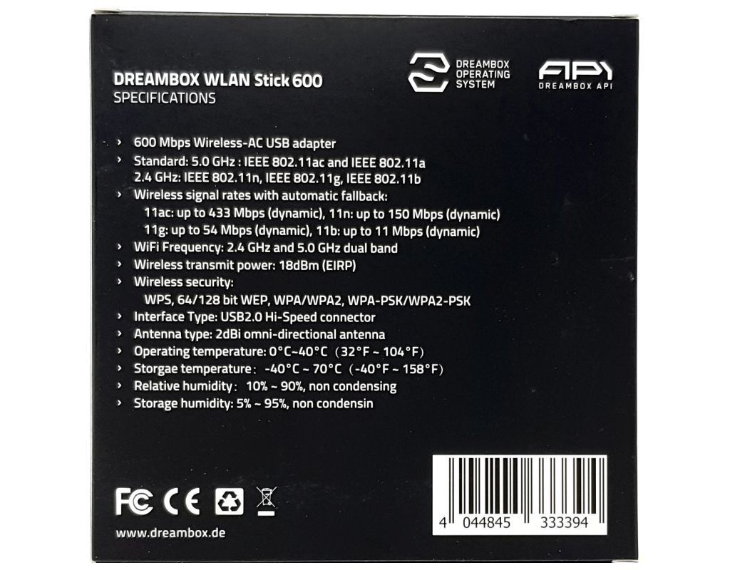 - 1x Dreambox Wireless 600 Mbit USB 2.0 Adapter