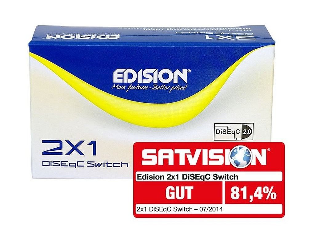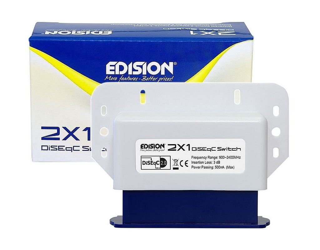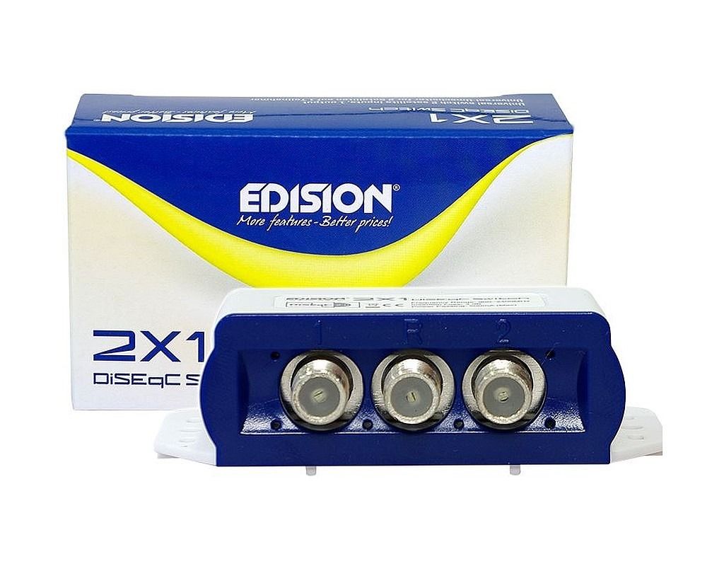 Der Edision DiSEqC Schalter 2/1 erlaubt es Ihnen das Signal von zwei Satelliten auf einen SAT-Receiver zusammenzuschalten, der DiSEqC Schalter eignet sich für Single, Twin, Quad und Octo LNBs. Der Edision DiSEqC Schalter kann sowohl im Innen- als auch Außenbreich problemlos genutzt werden da er sich in einem Wetterschutzgehäuse befindet.
