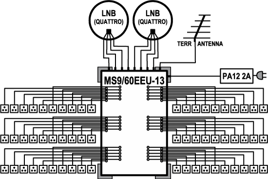 EliteLine Multischalter MS 9/60 EEU-14 mit energiesparendem Netzteil für 60 Teilnehmer und 2 Satelliten, Eingang für 8 Sat-Ebenen, 1 terrestrischer Eingang (aktiv/passiv), regelbare SAT-Eingänge, 4 Jahre Herstellergarantie