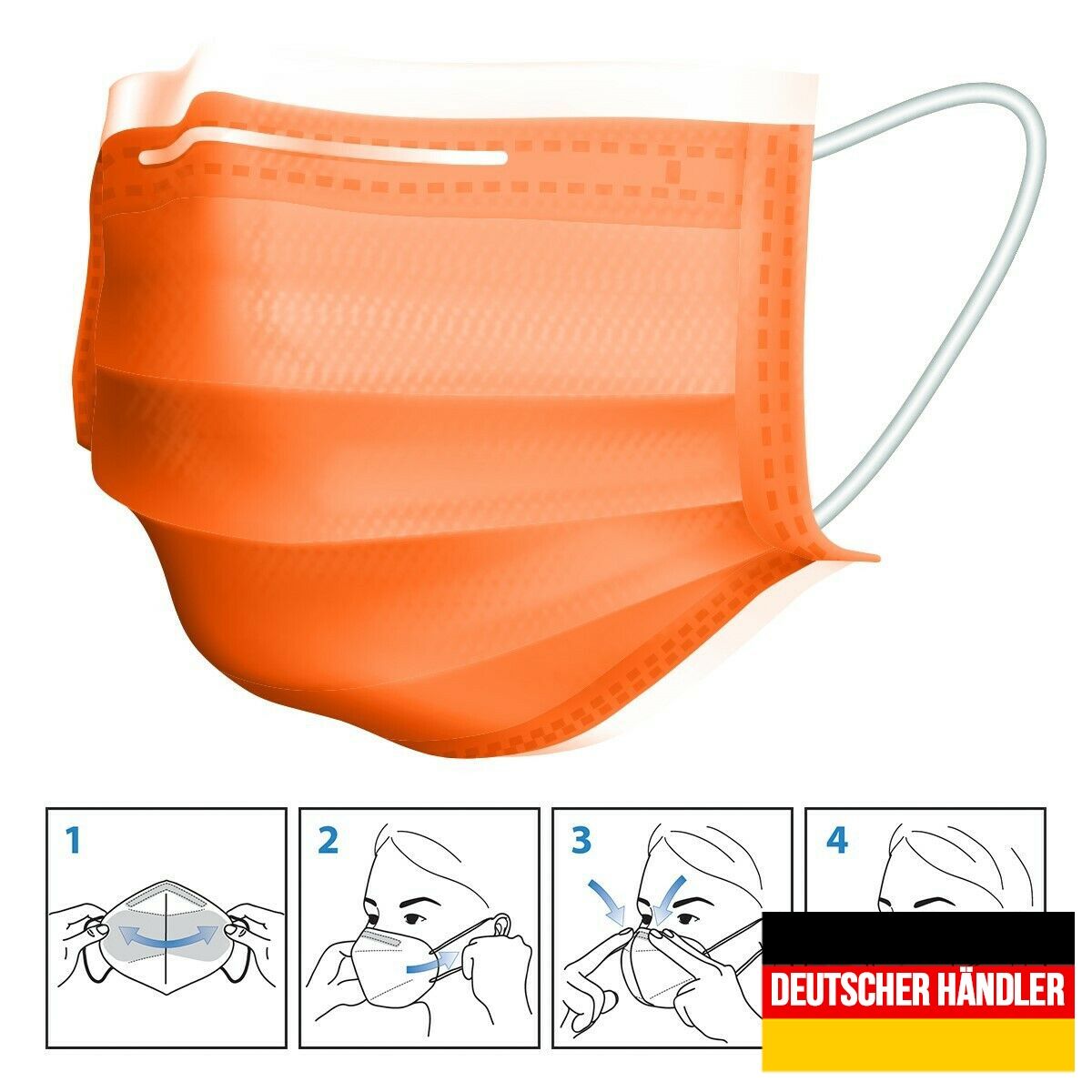 50er Satz Mundschutz Atemschutzmaske Mund-Nasen-Schutz 3-lagig Schutzmaske Orange