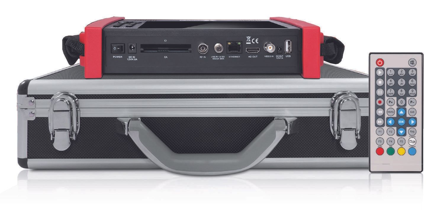 - Ports: DC IN, ANT IN, LNB IN, LAN, HD OUT, AV OUT, RS485, RS232/AV IN, HD IN, BNC OUT, BNC IN, DC OUT, USB