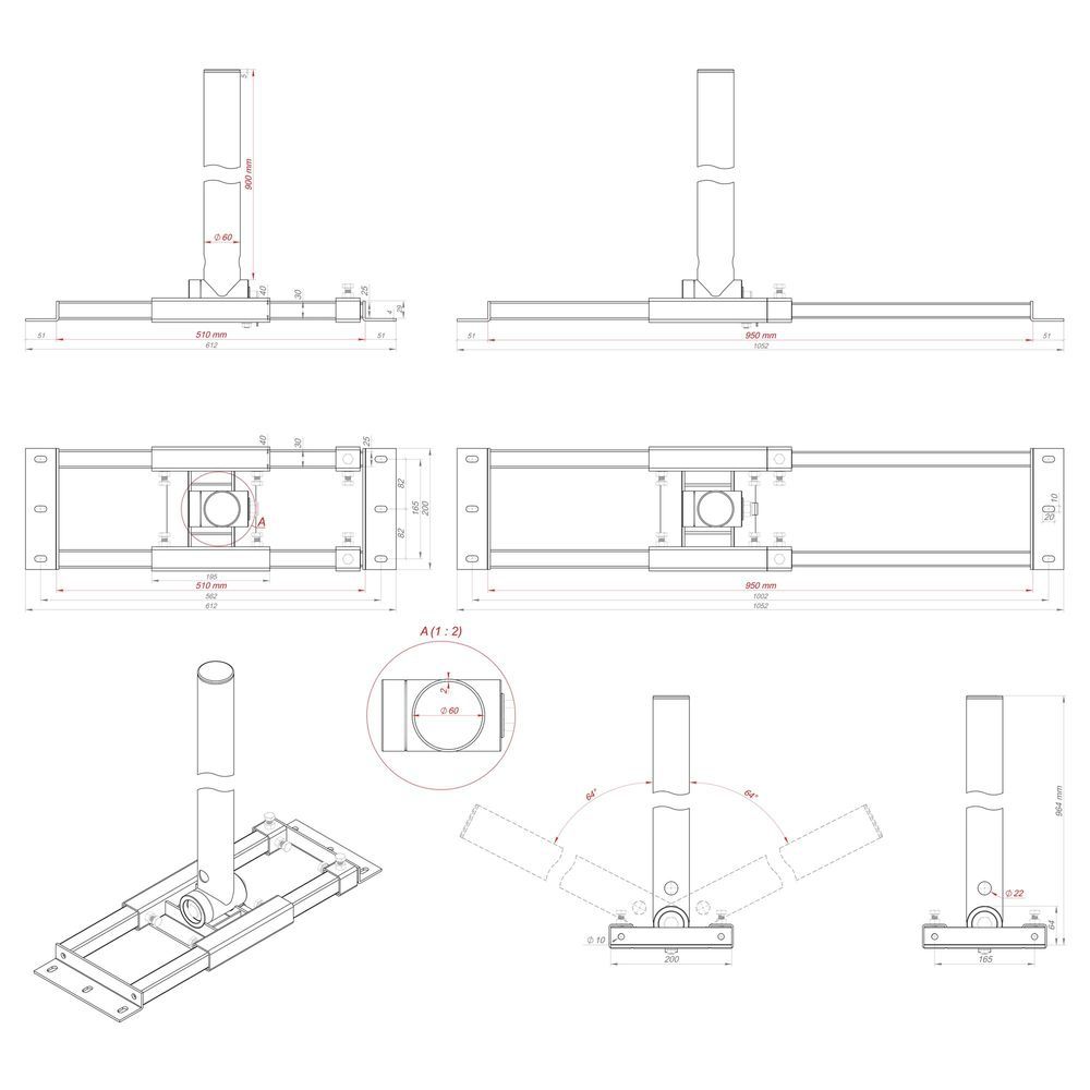 DACHSPARRENHALTER HMP DELUXE X90-60 90CM MAST 60MM SAT DACH HALTER