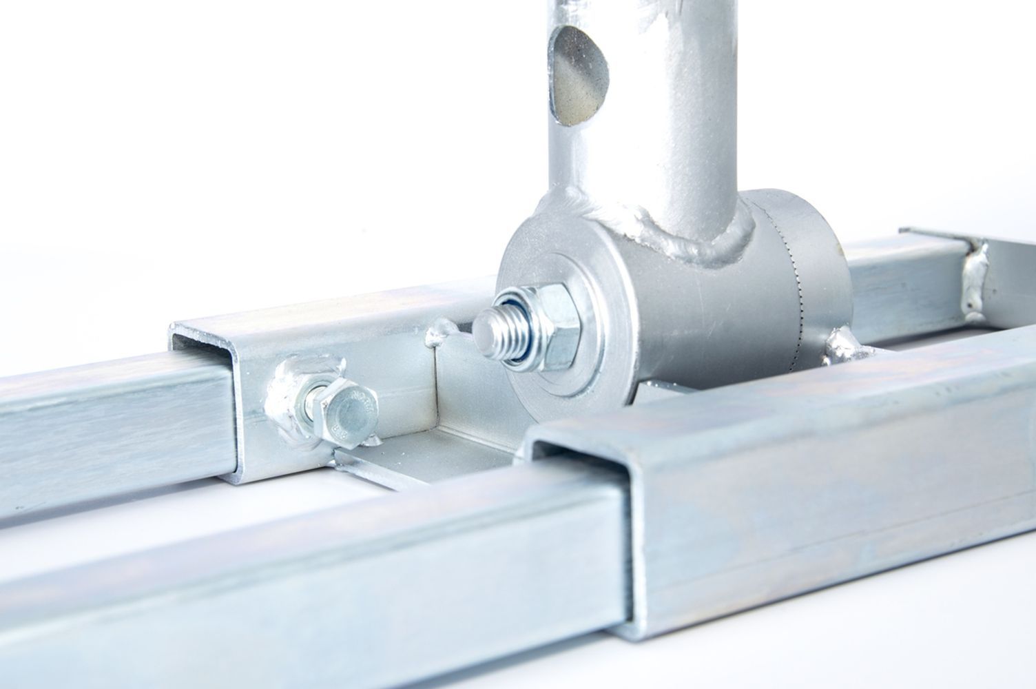 SAT Dach Sparren Halter ist im Besitz eines Mast-Führungssystems der ganz besonderen Art, der bereits vormontierte Führungswagen mit Schiebetechnik läuft absolut stufenlos auf zwei Schienen des Sparrenhalters und bringt den Antennenmast problemlos in die gewünschte Position.