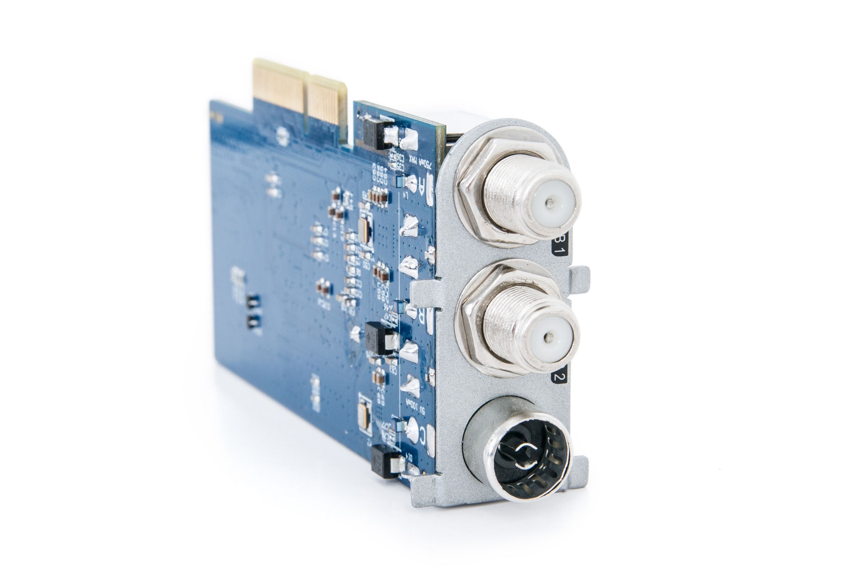 Der Plug&Play-Tuner verfügt über zwei DVB-S2X und einen DVB-C/T2 Eingang und wird einfach in den vorgesehenen Steckplatz eingesetzt. Beim nächsten Hochfahren erkennt die Dreambox den neuen Tuner automatisch und konfiguriert ihn. Weitere Einstellungen können dann im Dreambox-Menü vorgenommen werden.
