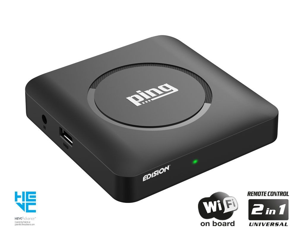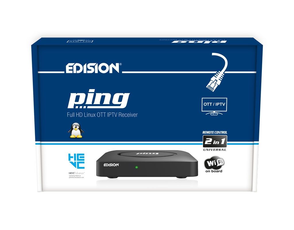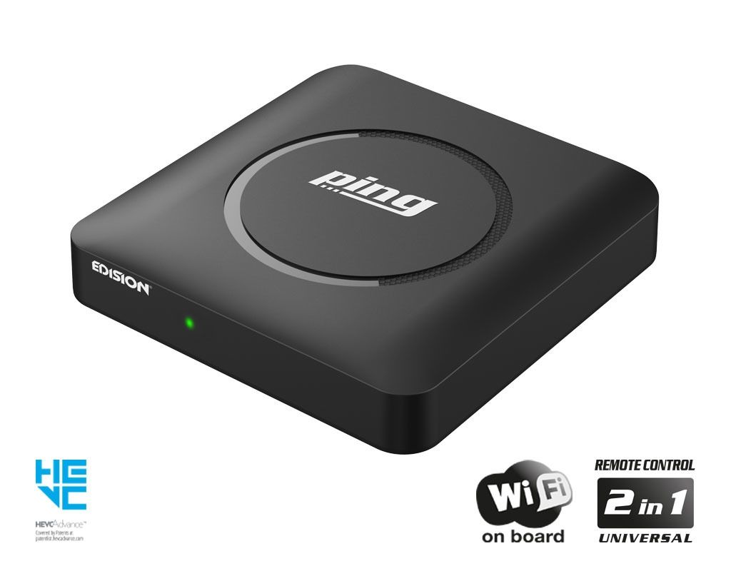 Der Edision ping ist eine Full-HD Linux OTT/IPTV Box die den H.265/HEVC-Standard unterstützt. Mit dem integrierten WLAN/WiFi Modul lassen sich Multimedia Funktionen, kostenloses Internet-Streaming-TV und -Radio sowie Ihre bevorzugten Apps wie Stalker-Unterstützung (Live-TV, VOD und Serien), WebTv, YouTube und Shoutcast problemlos nutzen.