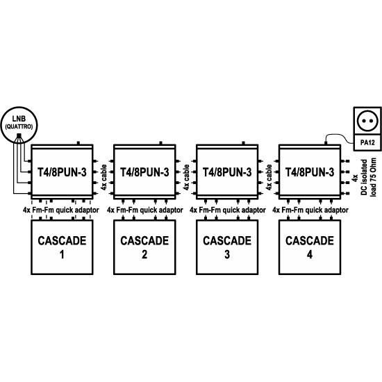 Diese Splitter arbeitet genau wie ein Kaskadierer. Man kann daran 2 Multischalter anschließen. Sie benötigen, falls Sie mehrere Satelliten empfangen möchten, dementsprechend mehrere Splitter.