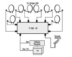 Der EMP-Centauri 9/1 GOTO nn Switch P.168 W V2 ist ein DiSEqC-Schalter 8x1 zum Zusammenschalten von 8 LNB\'s auf 1 Ableitung.