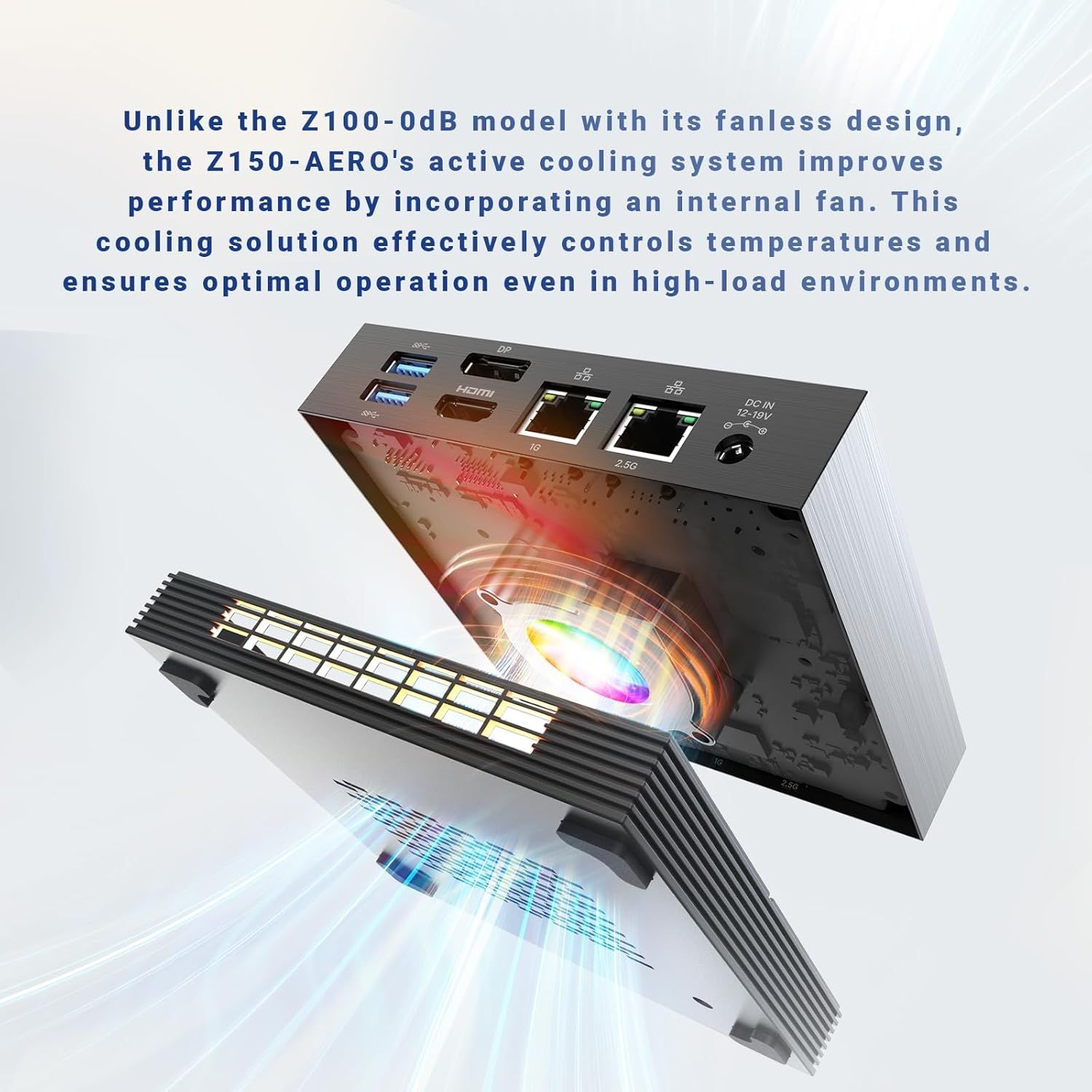 Der MINIX NEO Z150-AERO ist ein leistungsstarker Mini-PC mit integriertem Lüfter für effiziente Kühlung.