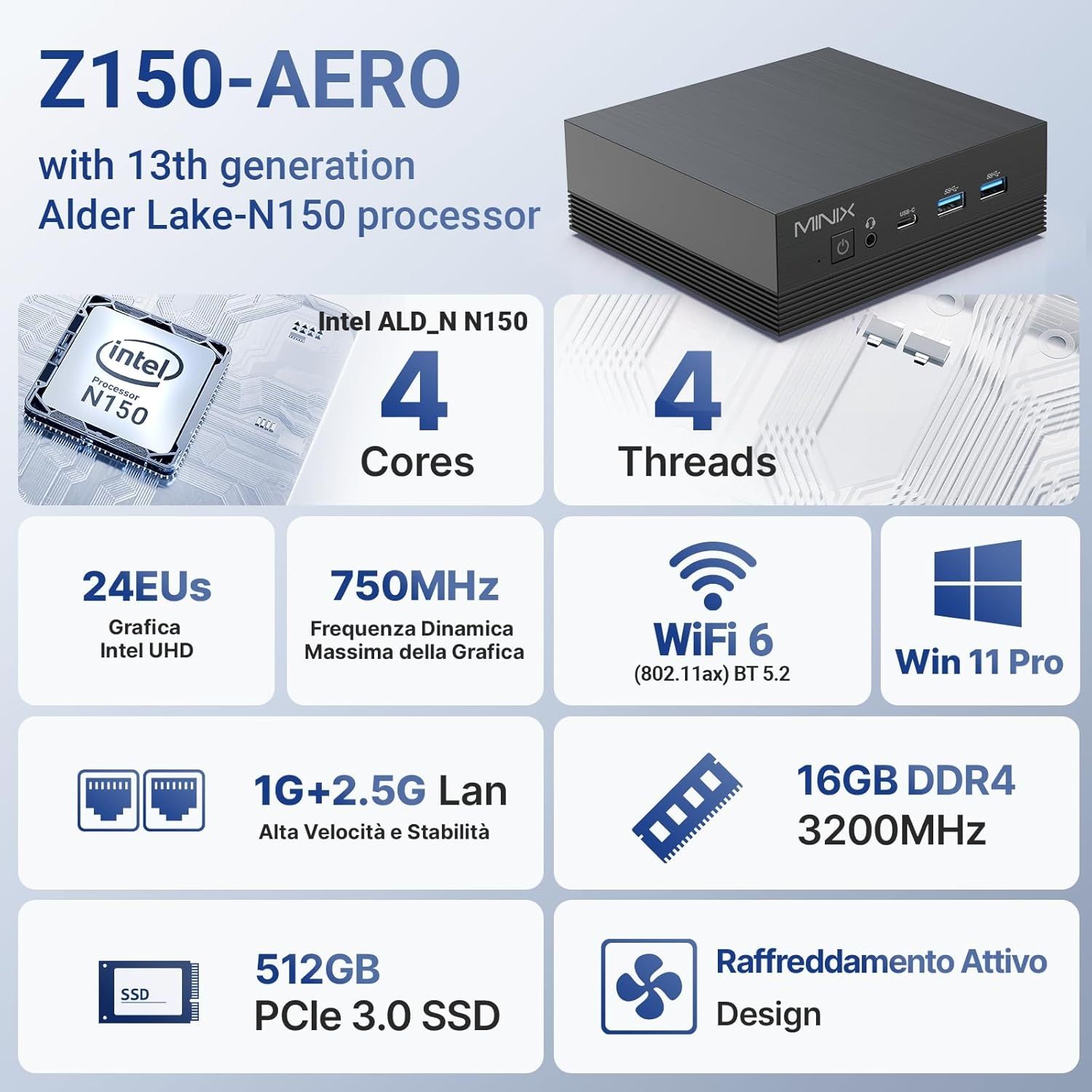 - MINIX NEO Z150-Aero mit 16GB RAM und 512GB SSD (Intel Twin Lake-N N150 Mini PC mit Windows 11 Pro [64-bit])