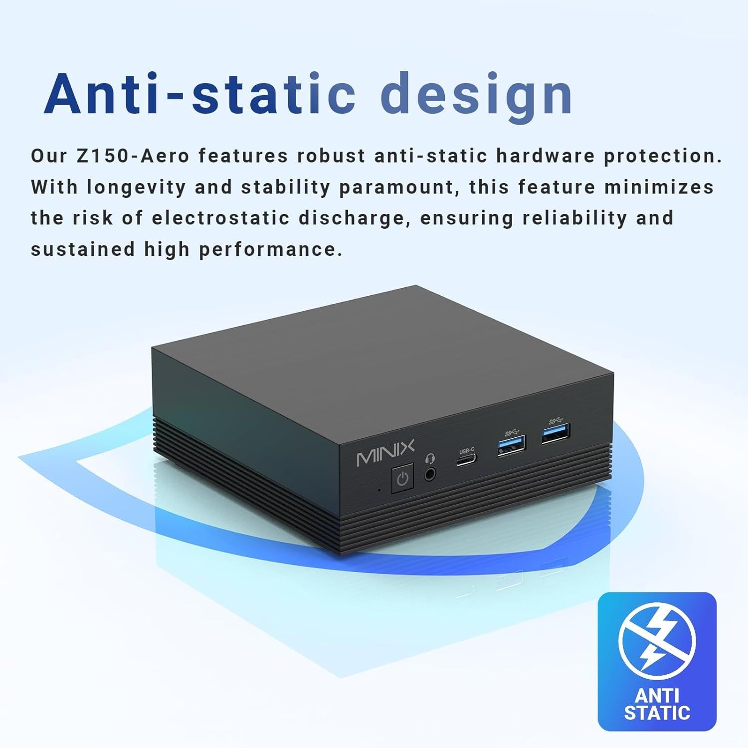 Bei Minix gehören hochwertiges Design und Premium-Komponenten zum Markenzeichen. Unser Z150-Aero bietet mit seinem robusten antistatischen Hardwareschutz einen deutlichen Vorteil, da die Langlebigkeit und Stabilität der Komponenten im Vordergrund steht.