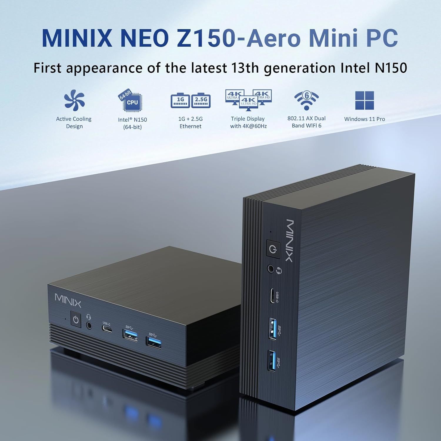 MINIX NEO Z150-Aero (512GB) / Intel N150 Mini PC, 512GB SSD, 16GB RAM, Triple Display, Win 11 Pro