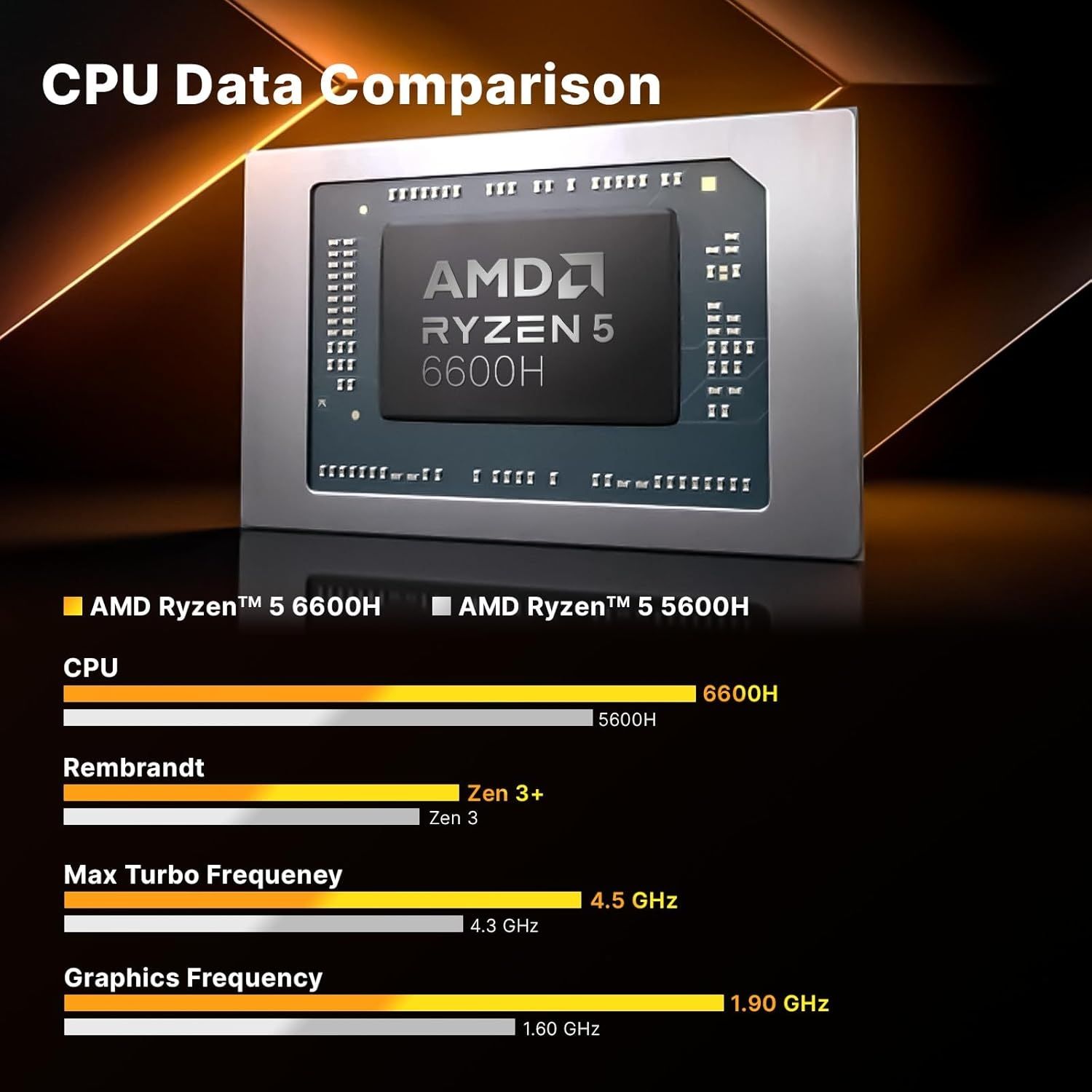 - AMD RyzenTM 5 6600H Prozessor, bis 4.5GHz, 16MB L3 Cache