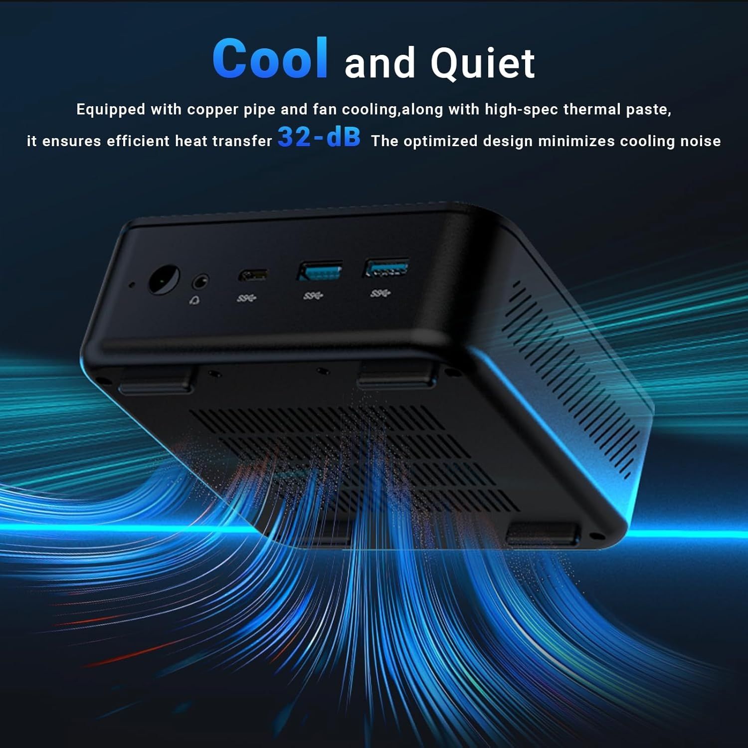 Das fortschrittliche Kühlsystem mit großen Kühlkörpern sorgt dafür, dass der Mini-PC kühl bleibt und auch bei schweren Aufgaben leise arbeitet; dabei bietet er eine optimale Leistung für lange Stunden bei geringer Überhitzung und minimaler Geräuschentwicklung.