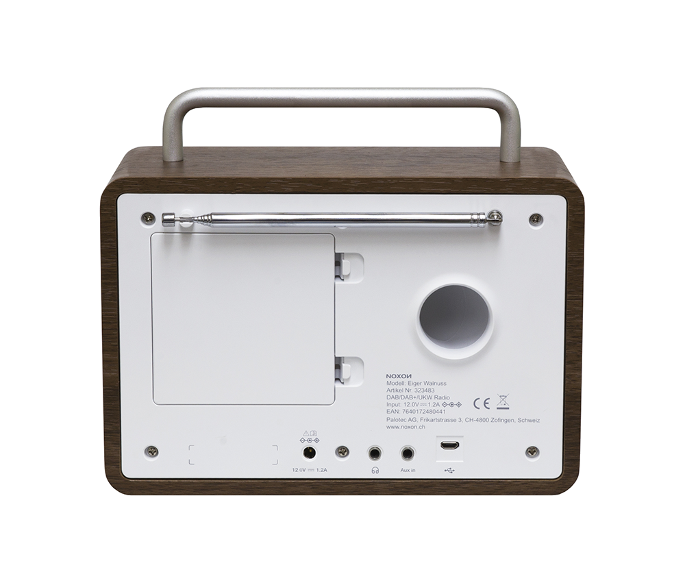 Noxon Eiger - Walnuss - DAB+ und UKW-Radio, Bluetooth, Kopfhöreranschluss, Akkubetrieb möglich