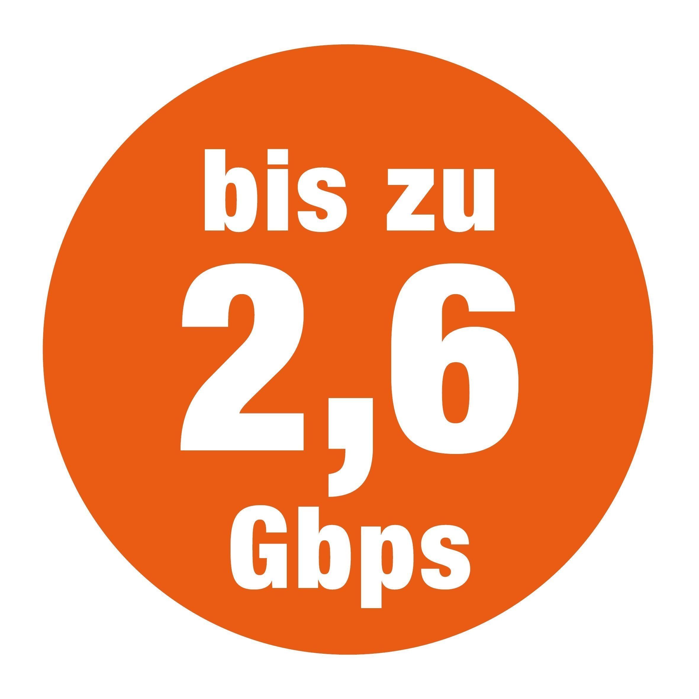 - Verbindung zum 5G Mobilfunknetz (bis 2,6 Gbps) oder 4G LTE (Cat 12 bis 600 Mbps)