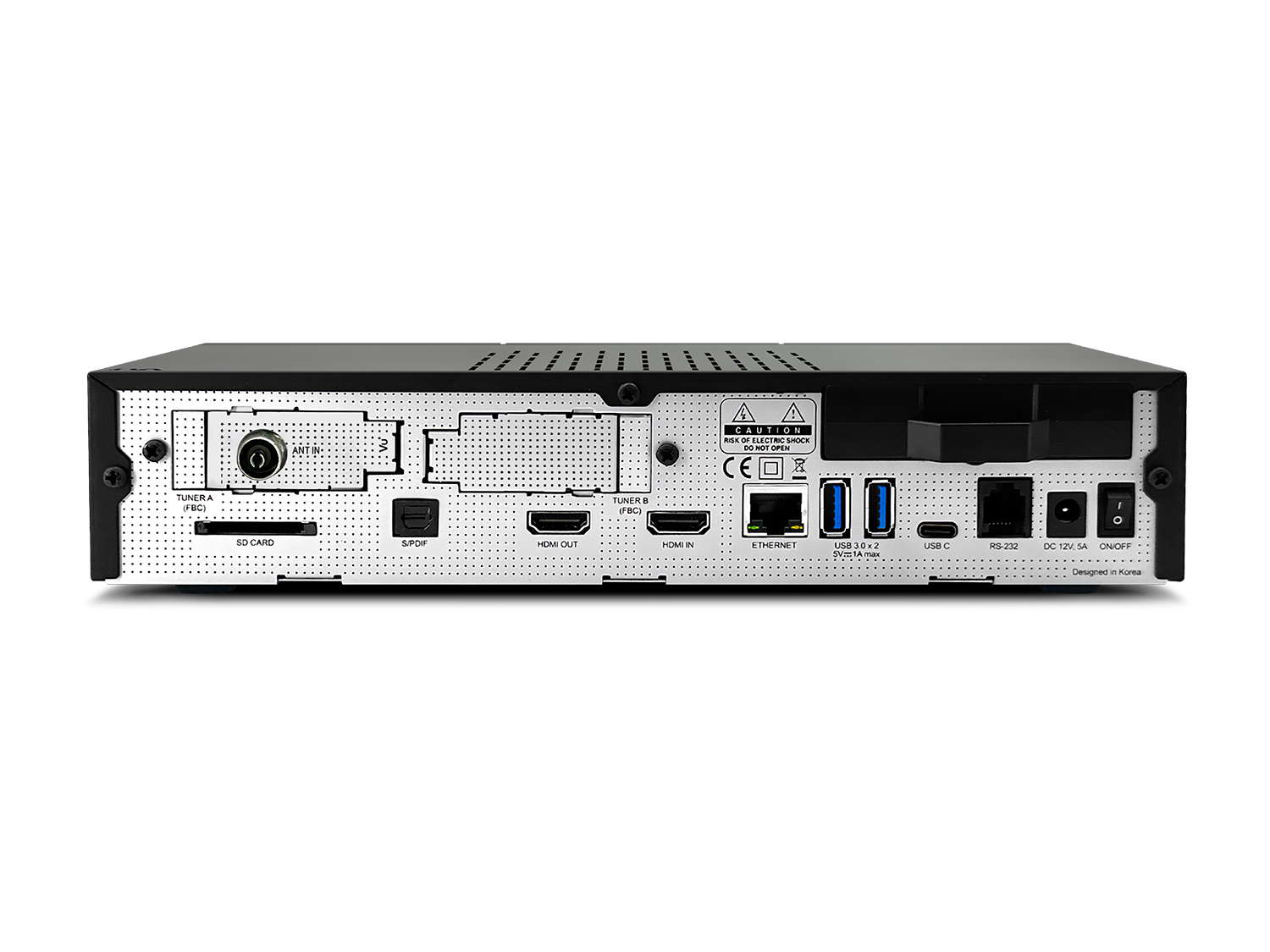 - 2x Tunersteckplatz für z.B. DVB-S2X / DVB-C* Full Band Capture (FBC) oder DVB-T2 Dual Tuner