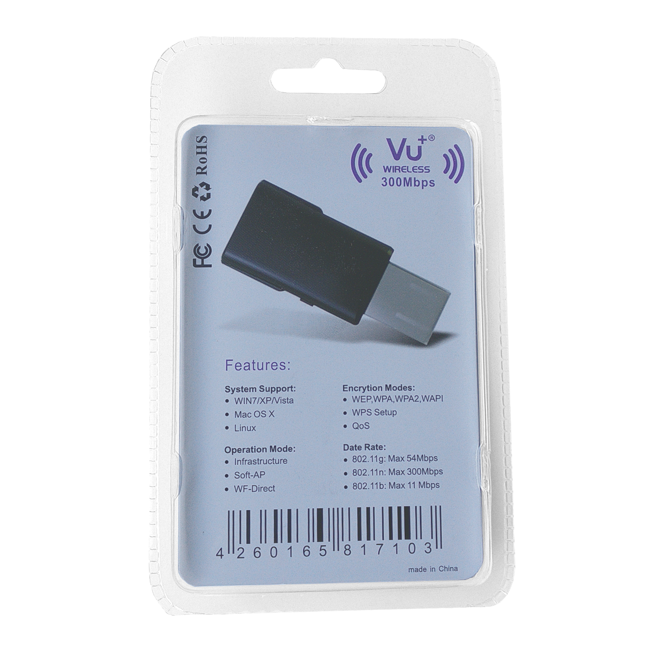 VU+® Wireless USB Adapter 300 Mbps incl. WPS Setup