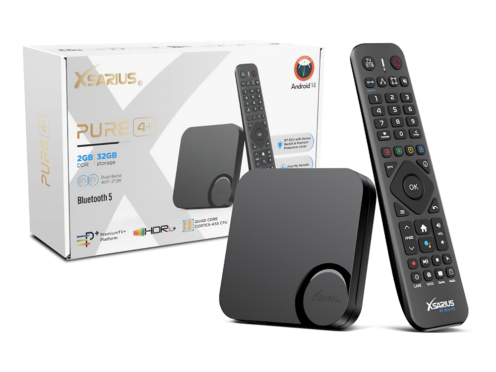 Xsarius PURE 4+ 4K Android 14 OTT 4K UHD IPTV Player H.265 HEVC Wlan