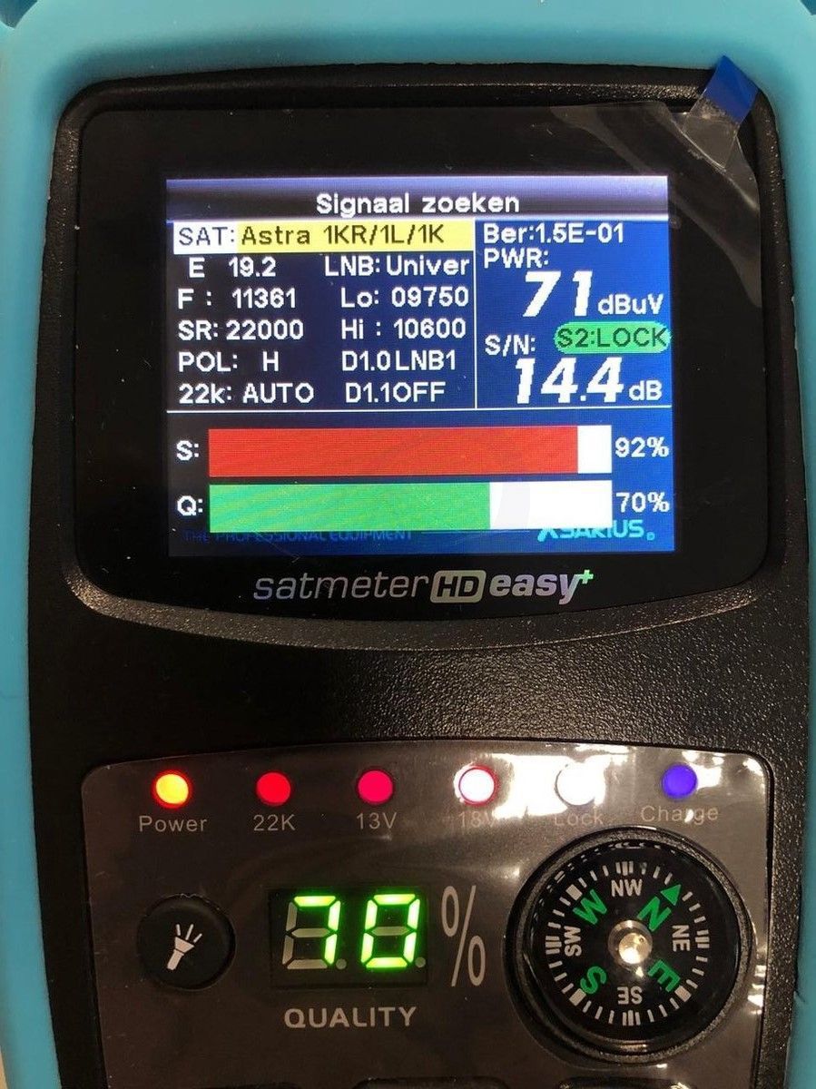Der Xsarius Satmeter HD Easy ist ein HD digitales Satellitenmessgerät. Die Xsarius Satmeter HD Easy hilft Ihnen effizient und korrekt Satellitenschüssel auszurichten (DVB-S / S2).Sie können sowohl das SD-Signal als auch das HD-Signal sehr genau finden und die Antenne danach ausrichten. Der Xsarius Satmeter HD Easy ist sehr kompakt, einfach zu bedienen, verfügt über ein Farbdisplay und LED-Anzeige für die Signalqualität. Mit dem eingebauten Akku der ca. 3 Stunden Akkulaufzeit hat, ist keine externe Stromversorgung während der Instattalation der Antenne erforderlich. Der Xsarius Satmeter HD Easy Tuner empfängt statische NIT Satellitenerkennung, S / N in dB BER-Messung, DiSEqC 1.0 und 1.1. ? Der Xsarius Satmeter HD Easy ist ideal für Reisen oder zu Hause. Besonderheiten Xsarius Satmeter HD Easy