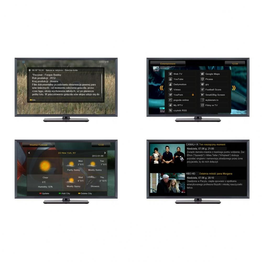 Ariva 53 ist die beste Lösung für den Empfang von sowohl HD (in Full HD 1080p) als auch SD Sendern. Auf der Rückseite finden Sie eine USB-Schnittstelle für das Abspielen folgender Datei-Formate MP3, OGG, FLAC, JPEG, MPEG, MKV, AVI, XVID, JPEG, BMP was aus dem Gerät eine flexible Alternative zu allen auf dem Markt vorhandenen Multimedia-Playern macht. Der Receiver charakterisiert sich durch einen geringen Stromverbrauch, vor allem in Deeply Stan-by-Modus liegt der Wert unter 0,5W.