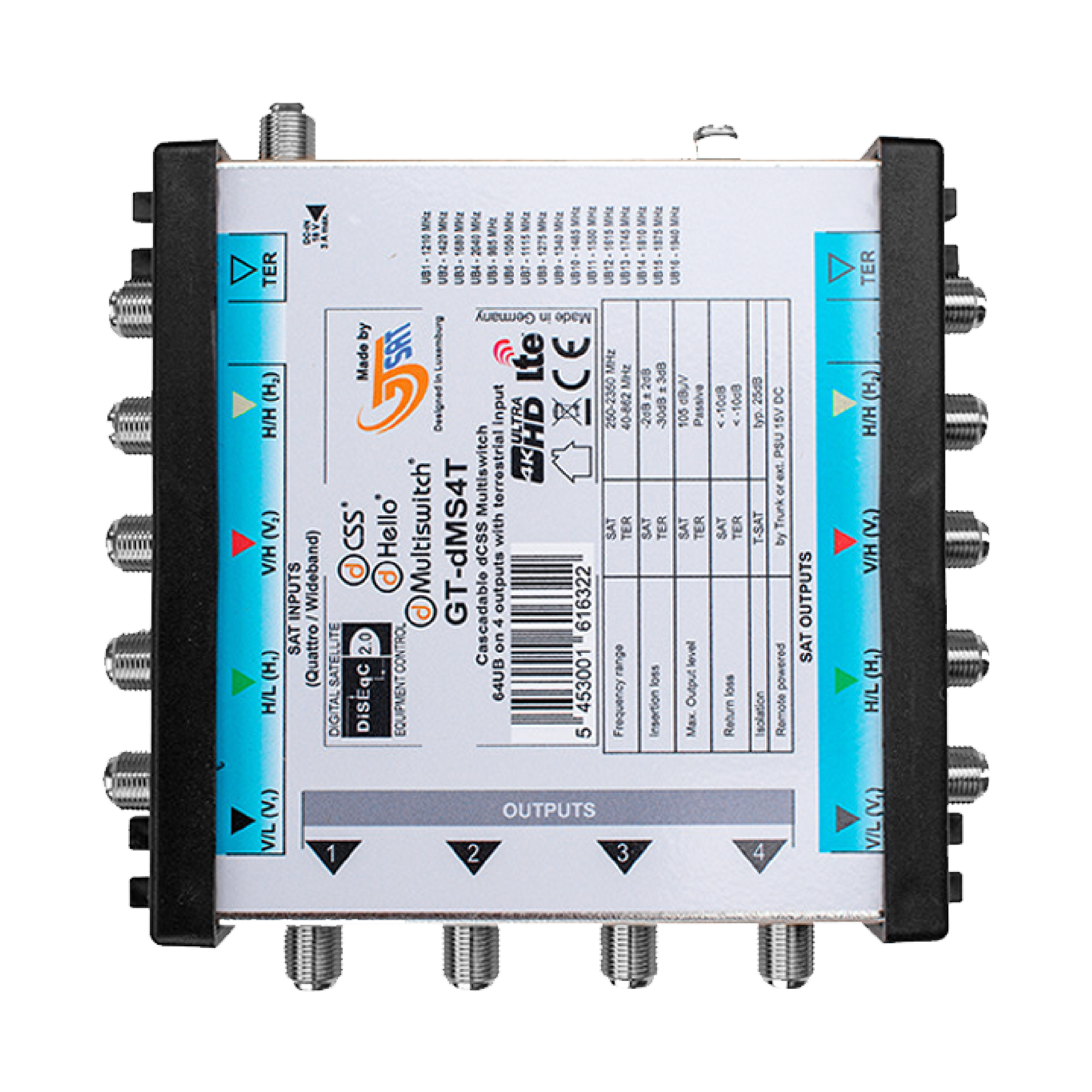 GT-SAT Unicable-Multiswitch GT-dMS4T 4x16UB für bis zu 64 Teilnehmer - 4K/UHD