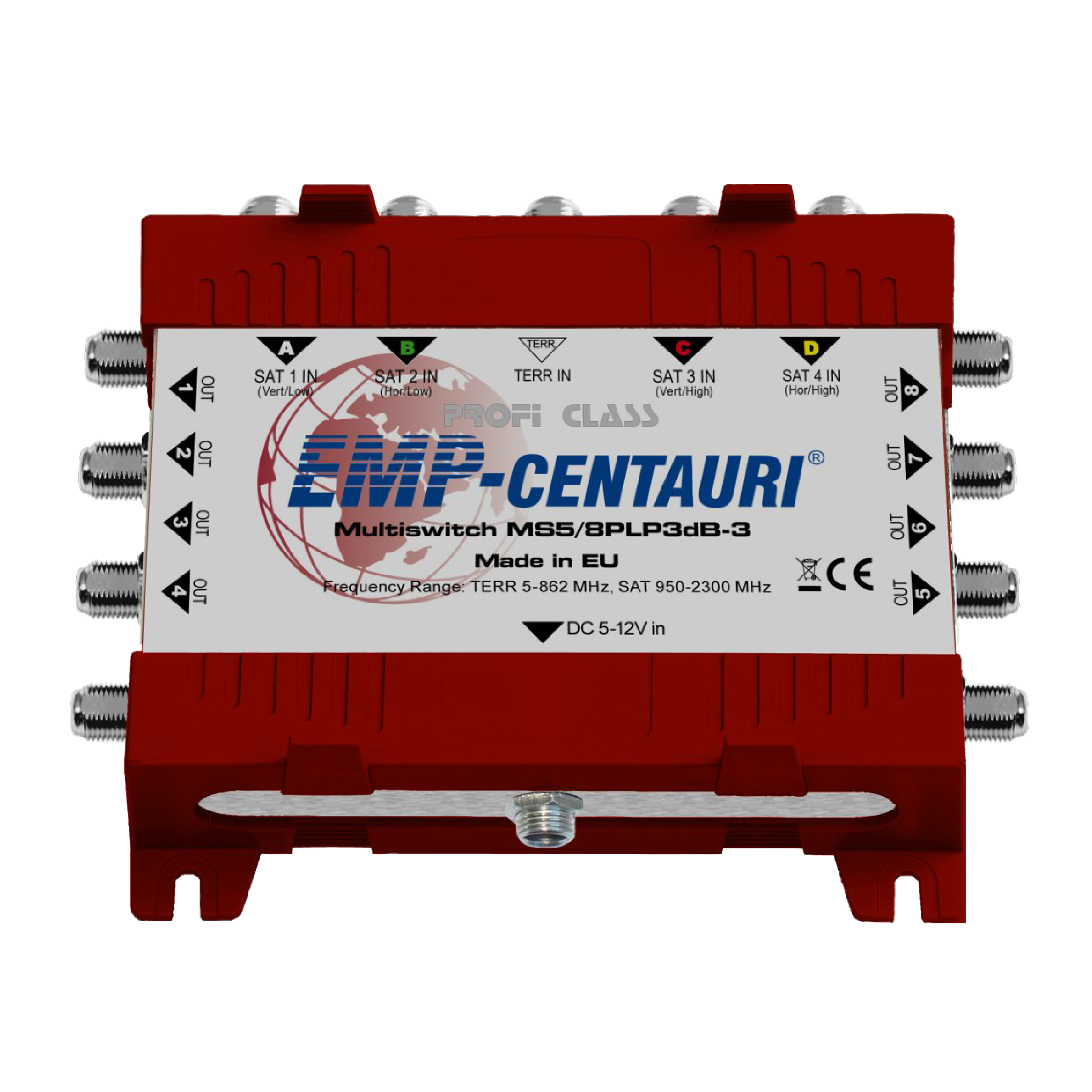 5 in / 8 out Einzelmultischalter. Geeignet um eine Satellitenposition (mit 4 Ebenen), sowie Terrestrik, 8 Teilnehmern zur Verfügung zu stellen.