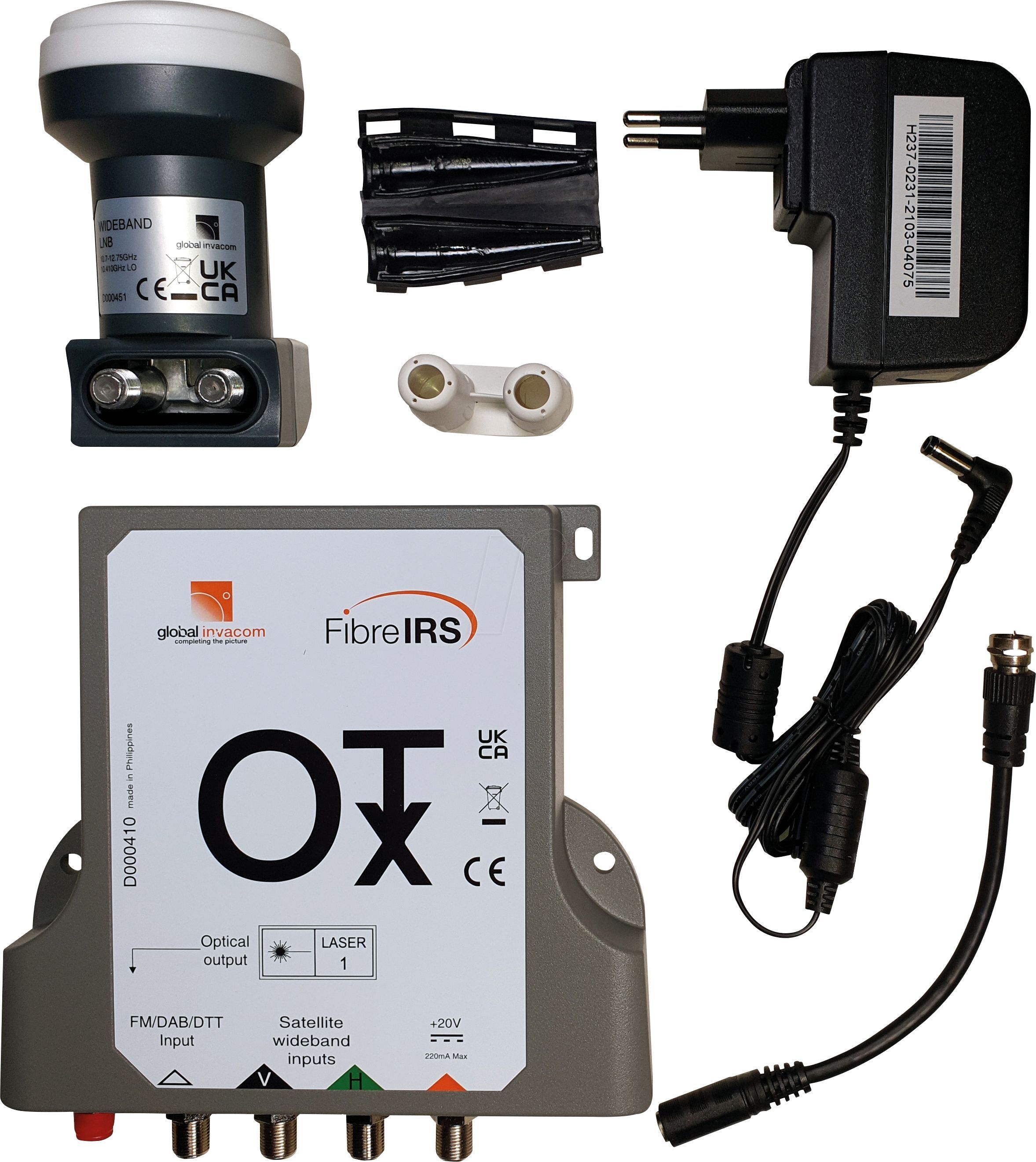 Im Set enthalten ist ein Wideband LNB und die OTX Einheit mit einer optischen Wellenlänge von 1310 nm.