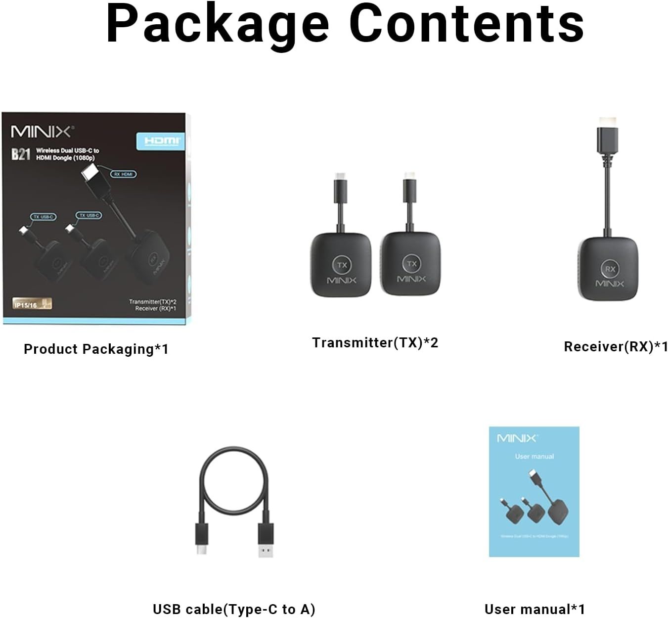 MINIX B21 Wireless HDMI – Zwei Sender & EIN Empfänger, Plug & Play Multi-Screen-Erweiterung
