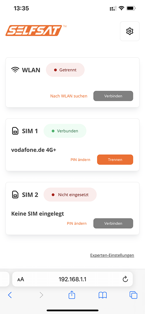 Die Verbindung mit dem WLAN Ihres Internet Routers ist so einfach wie im Hotel oder zu Hause. Die erste Verbindung kann dabei über die auf dem Internet-Router angebrachten QR-Codes, oder über den WLAN-Namen und das Passwort hergestellt werden. Nach Änderung des Passworts erfolgt die Verbindung über Ihr festgelegtes persönliches Passwort. Die Einrichtung und Bedienung der vereinfachten, benutzerfreundlichen Bedienoberfläche des Internet Router ist für Apple oder Android Smartphones, Tablets und Laptops gleichermaßen möglich und erfolgt über den Internet-Browser. Es muss dadurch keine App installiert werden.