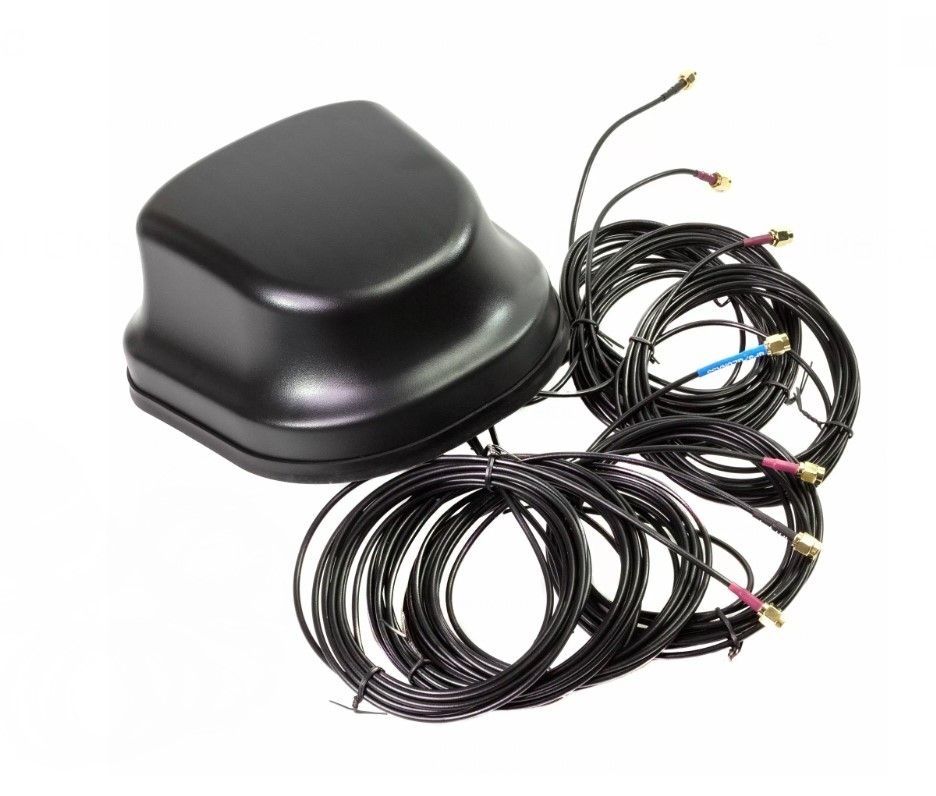 6 in 1 Combo Außenantenne, (1) WiFi + (4) 5G / 4G LTE / 3G MIMO + (1) GPS. Combo Antenne für den Einsatz im Außenbereich, ausgestattet mit einer WLAN-Antenne, einer GPS-Antenne und vier 5G /4G LTE / 3G MIMO-Antennen. Die Combo Antenne eignet sich für den Einbau auf mobilen Fahrzeugen. Die Antenne besitzt sechs Kabel von je 1 m Länge. Das WiFi-Kabel ist mit RP-SMA-Stecker (männlich) ausgestattet, die anderen Kabel mit SMA-Steckern (männlich).
