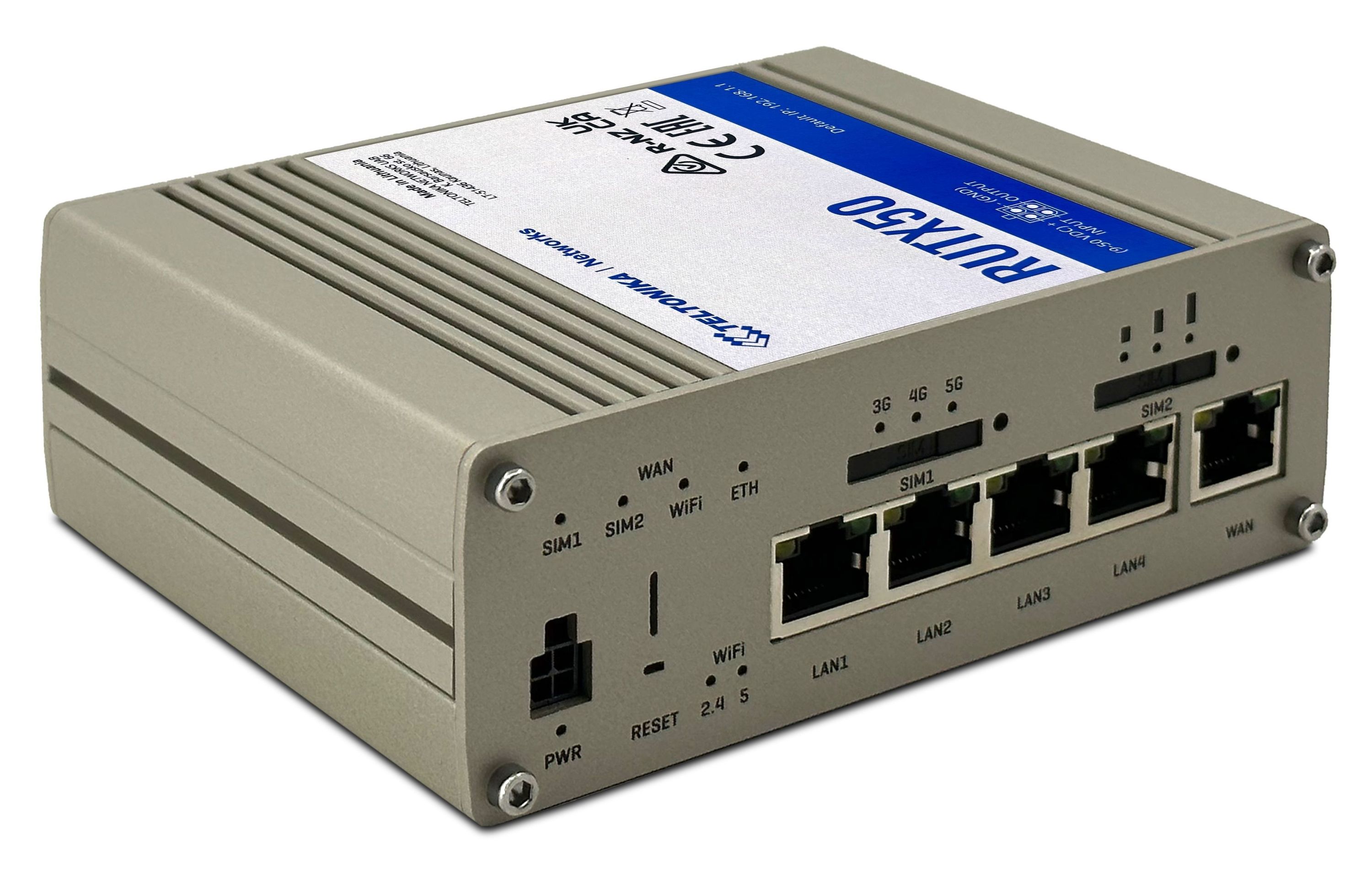 Teltonika RUTX50 mit Panorama Antenne (4 x 5G/4G, 2 x WLAN, 1 x GPS, 1 m Kabel)