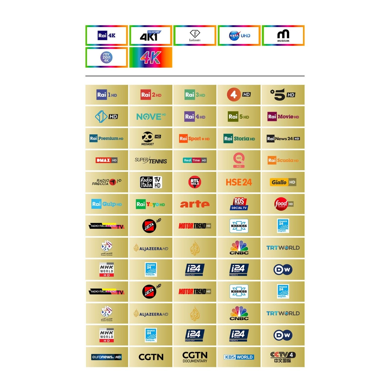 satellitare tivùsat, inclusi quelli in alta definizione e 4K ULTRA HD. Tanti canali gratuiti nazionali ed internazionali.